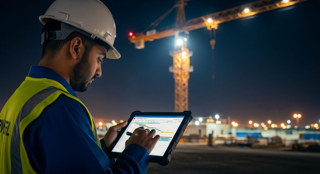دخل عبد الله ميداننا وهو حديث التخرج من جامعة الملك سعود. كلَّفه موجِّهه أوّل أسبوع بتحديث “Log” حديد التسليح لأحد الأبراج. بدا العمل روتينياً، لكن عبد الله ابتكر باستخدام Python نصوصًا تُدخل الكميات في قاعدة بيانات مباشرةً، فخفض الهدر الزمني 40 ٪.