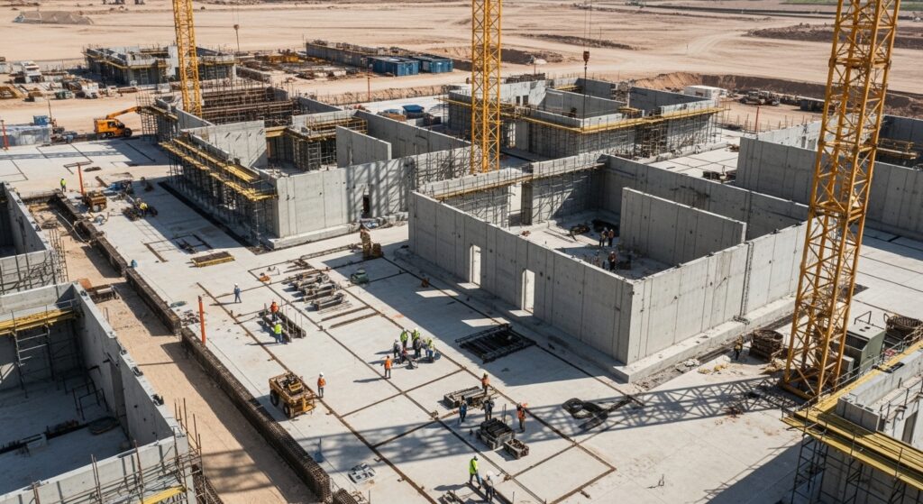 المباني المعيارية (Modular): إنتاج الحمامات والمطابخ في مصانع ثم تركيبها ميدانياً يخفض التكلفة حتى ١٥ %.